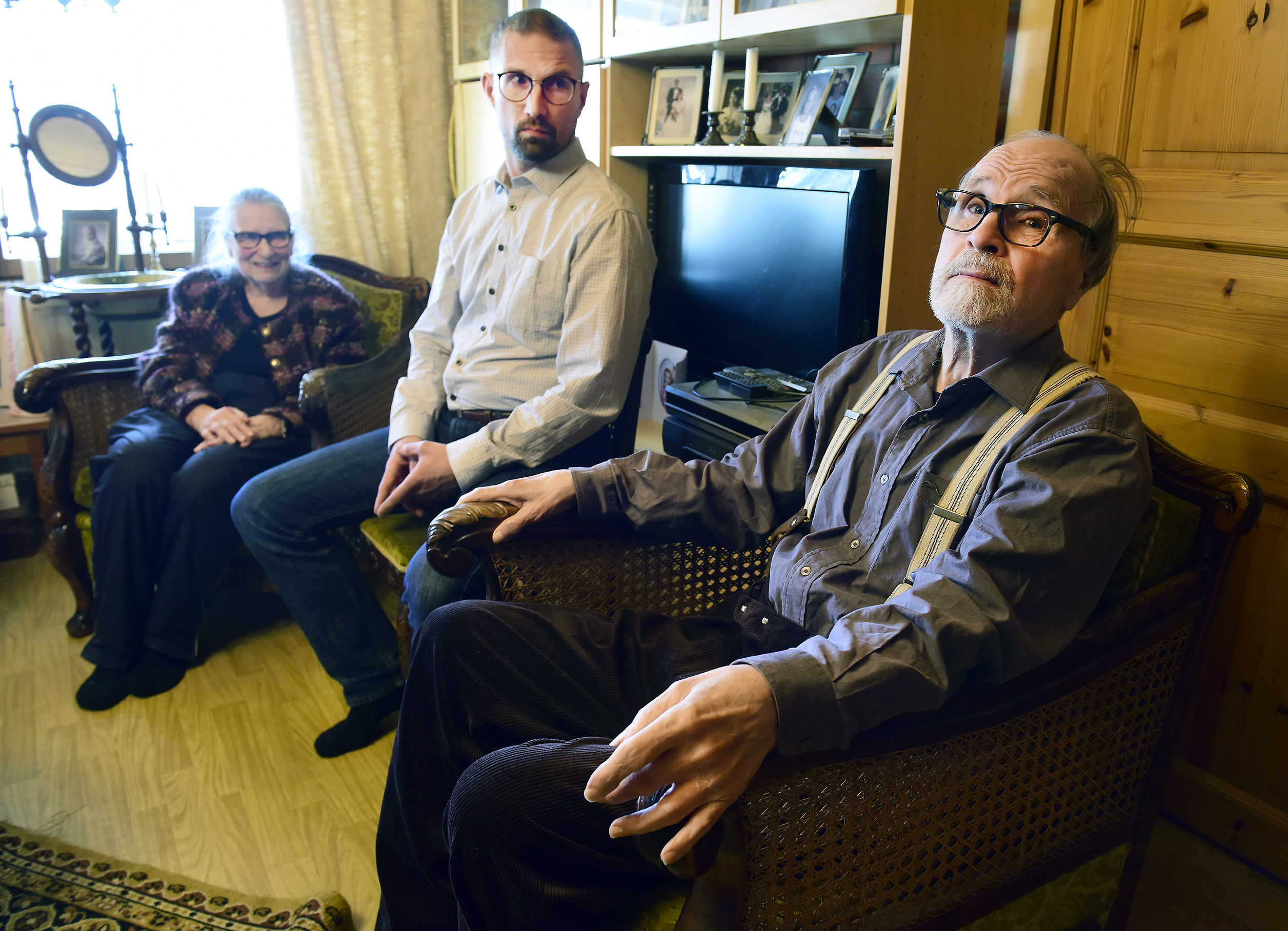 Reino Penttilä loukkasi itseään lokakuussa vakavassa tapaturmassa. Kuvassa myös Toni-poika ja Christine-vaimo. Kuva: Esko Keski-VähäläKokkolassa tapahtui viime vuoden lokakuussa vakava tapaturma, kun 78-vuotias Reino Penttilä kaatui potkurollaattorilla Mesilän rautatien alikulussa Kokkolassa.