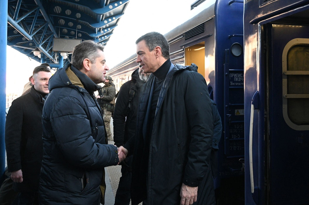 Sanchez saapui Ukrainan pääkaupunkiin junalla päivää ennen Venäjän Ukrainaan tekemän suurhyökkäyksen alkamisen vuosipäivää.