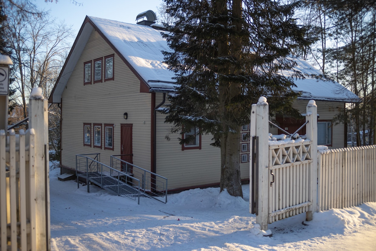 Yliopiston välittömässä läheisyydessä sijaitseva kirjailijatalo on Jyväskylän kirjallisen elämän keskuspaikka. Kuva: Hanne ManeliusSpitz suosii perinteistä paperikirjaa, vaikka suhtautuu avoimesti teknologiaan.