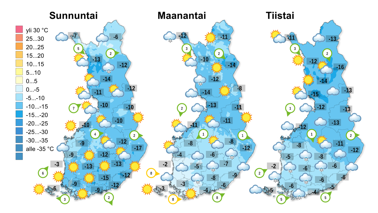 Tällä hetkellä näyttää siltä, että pakkaset kyllä jatkuvat, mutta myös matalapaineiden lisääntyminen näyttää mahdolliselta. Näiden myötä tuulet voivat alkaa sekoittaa merivesiä ja hidastaa jäätymistä. Oli miten oli, jäät ovat jo nyt keskimääräistä paksumpia.