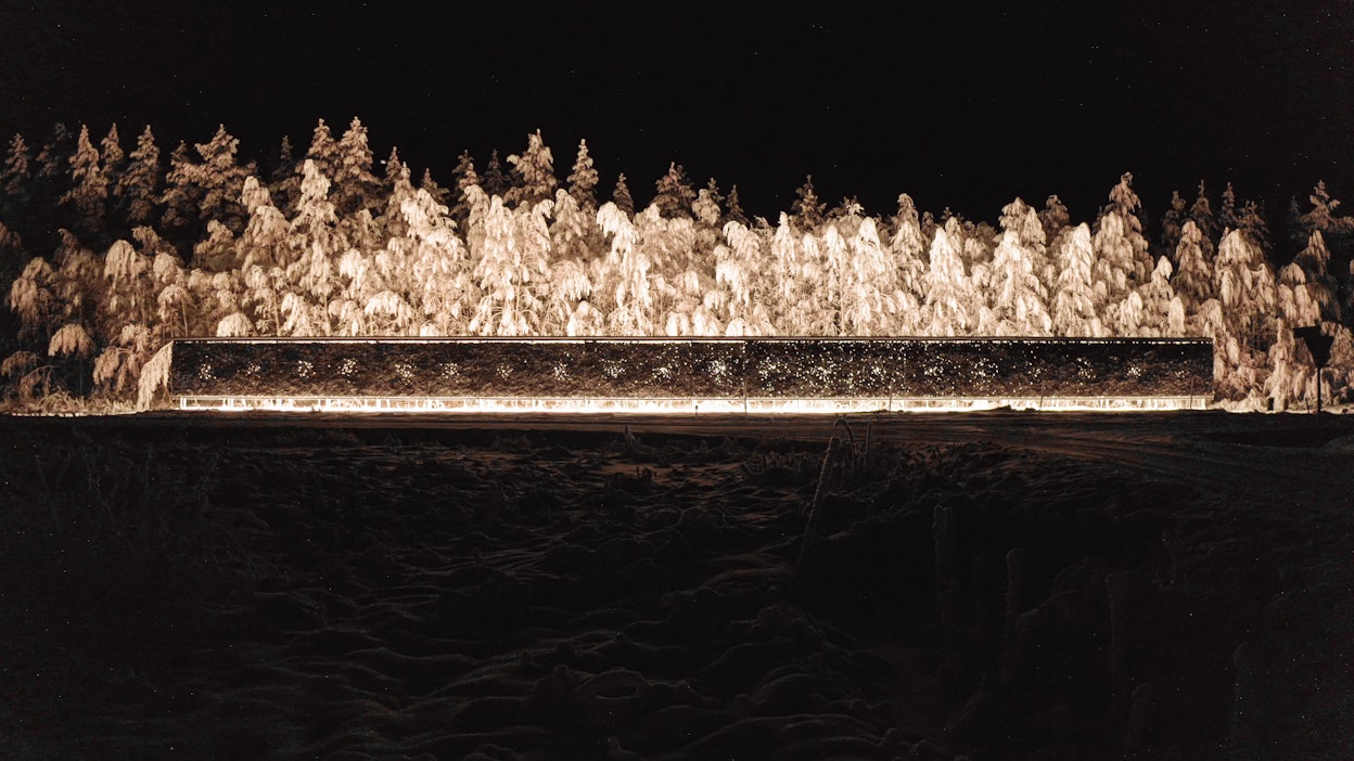 “Kevyen rakenteen varaan lähes metrin korkeuteen maasta nostettu kokonaisuus vaikuttaa kaukaa katsottuna levitoivan ilmassa. Öiseen aikaan teos valaistaan takaapäin, jolloin se hahmottuu siluettimaisena, vain halkojen välistä siilautuvan valon päästessä läpi”, Nisunen kuvailee teoksen ilmaisua.