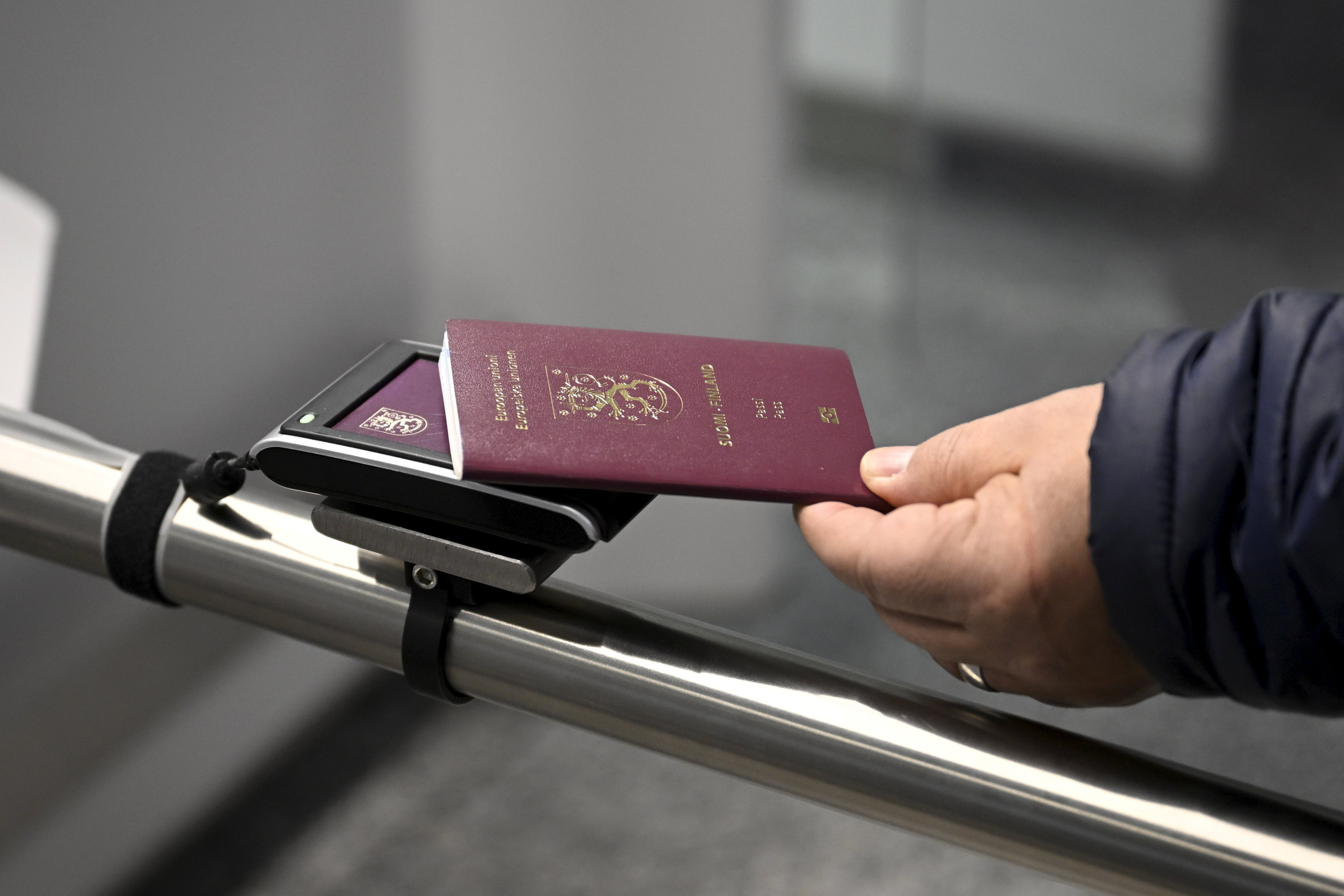 Rajavartiolaitos esitteli digitaalisen matkustusasiakirjan pilotoinnin mediatilaisuudessa Helsinki-Vantaan lentokentällä Vantaalla syksyllä 2023. - ANTTI AIMO-KOIVISTO / LEHTIKUVA.Kymmenen vuoden passeja ei kannata vielä ryhtyä valmistamaan ja myöntämään, sanoo Digi- ja väestötietovirasto (DVV).