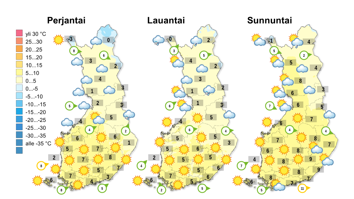 Viikonlopun tarkemmat säätiedot ovat luettavissa perjantain Maaseudun Tulevaisuuden näköislehdestä. Kuva: Ilmatieteen laitosPerjantaina ilmestyneen Maaseudun Tulevaisuuden takasivulta puuttuivat säätiedot.